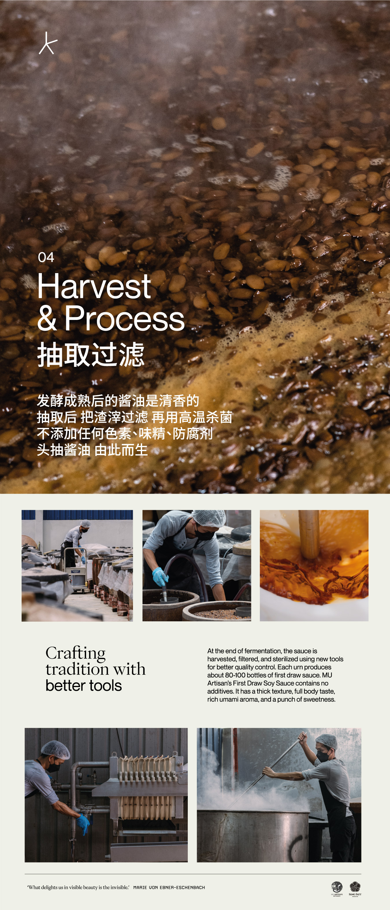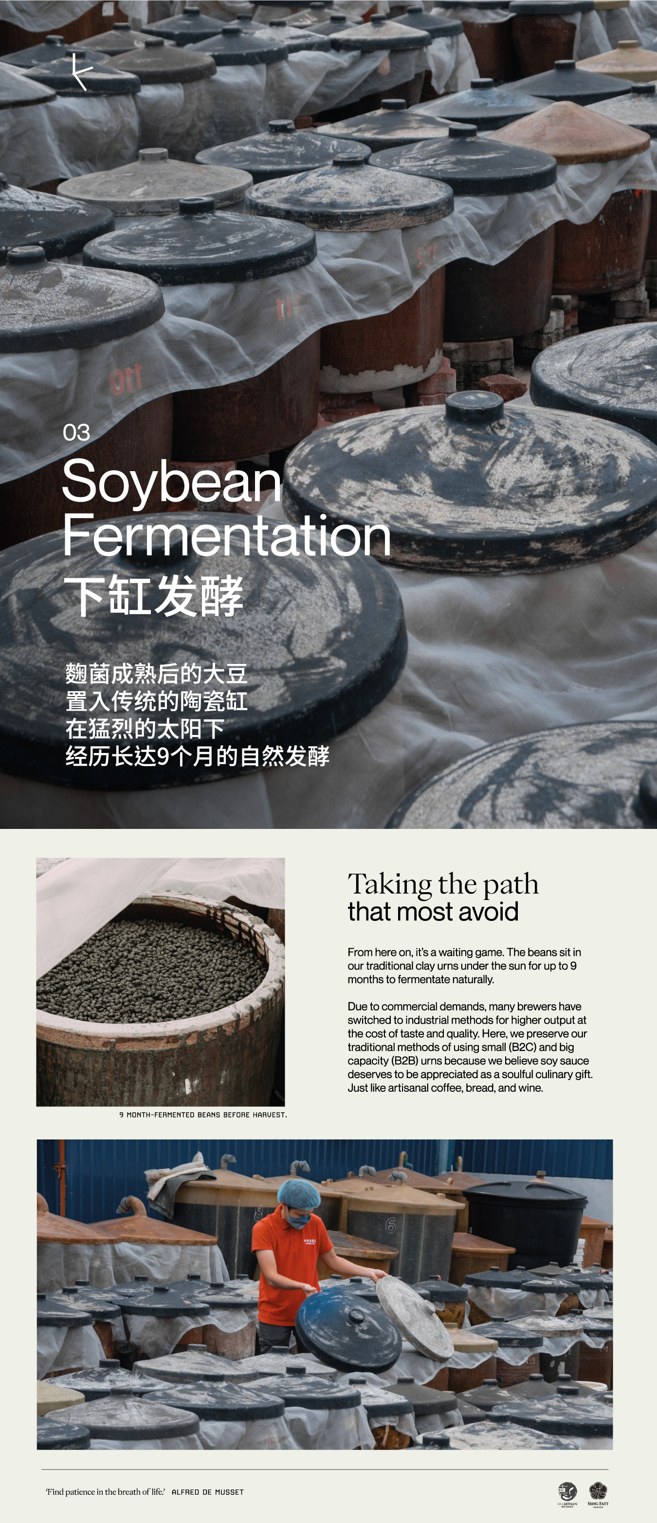 Visualised and documented the soy sauce making process flow and brand story of a family soy sauce brewer based in Malaysia, MU Artisan Soy Sauce, for their open factory visitation. This exhibition design experience intends to deepen both locals and tourists’ understanding and appreciation of the iconic traditional condiment in a modern light.